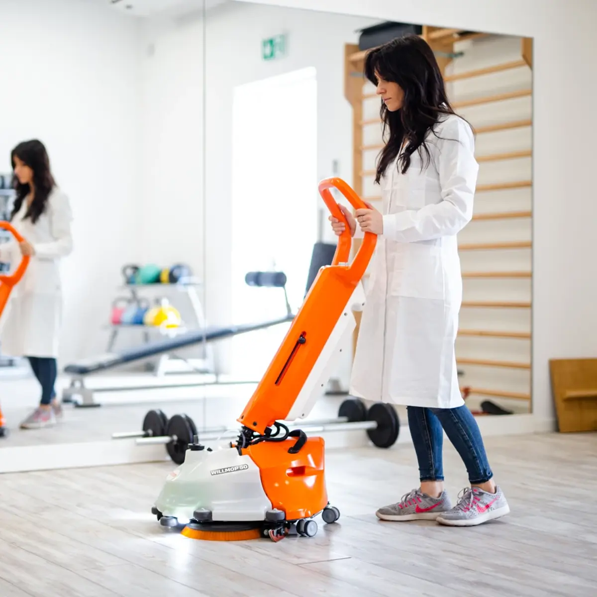 Mit der kompakten Vertikal-Scheuersaugmaschine WILLMOP 50 S können Sie unglaublich schnell und professionell reinigen. Diese Vertikale Scheuersaugmaschine, die mit einem Lithium-Akku mit Schnellladung betrieben wird, vereint die hohe Leistung einer industriellen Scheuersaugmaschine mit der Mobilität und Flexibilität eines Bodenwischers und ermöglicht dem Anwender eine Reinigungsleistung von über 2.100 m²/h. Dank seines innovativen elastischen Gelenks zwischen dem Griff und der Wascheinheit garantiert der Willmop 50 S dem Bediener bei allen Reinigungsaufgaben geringsten Kraftaufwand.